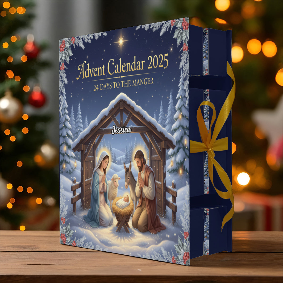 24 Days to the Manger - Personalized Christian Folded Advent Calendar With Ornaments