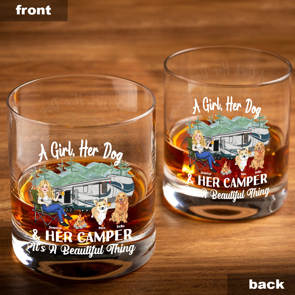 A Girl Her Dog And Her Camper - Camping gift for dog lover - Personalized Rock Glass