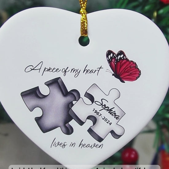 A Piece Of My Heart Lives In Heaven - Personalized Memorial Ceramic Heart Ornament