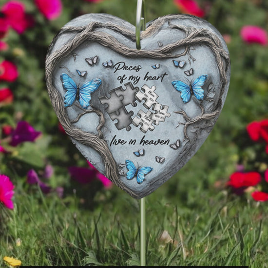 A Piece Of My Heart Lives In Heaven - Personalized Memorial Heart Hanging Garden Slate
