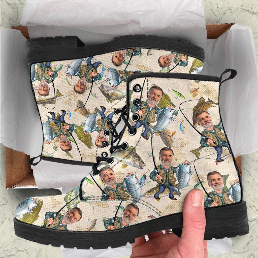 Photo Inserted Funny Fishing - Personalized Fishing Leather Boots