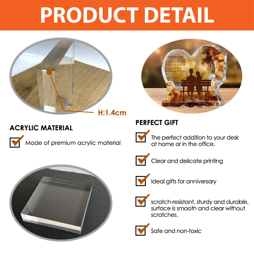 Anniversary Gift Custom Calendar - Personalized Couple Custom Shaped Acrylic Plaque