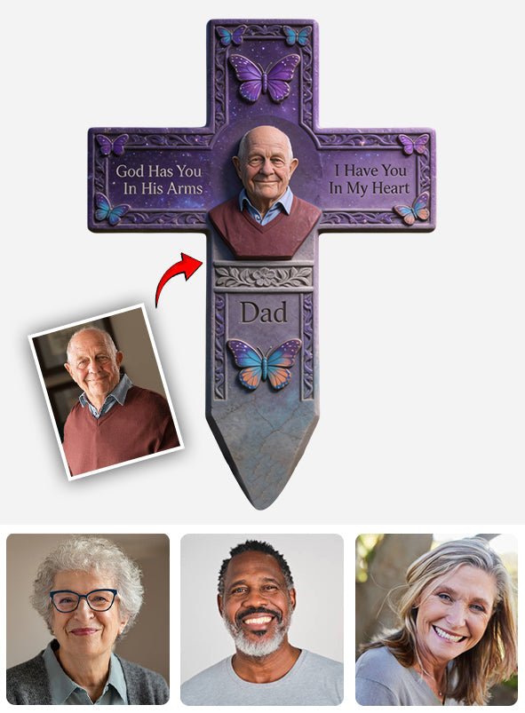 Any Photo God Has You In His Arm I Have You In My Heart - Personalized Memorial Acrylic Garden Sign/ Acrylic Plaque Sign