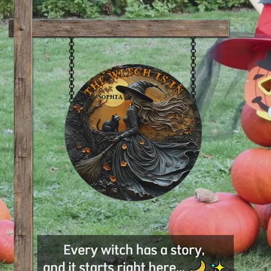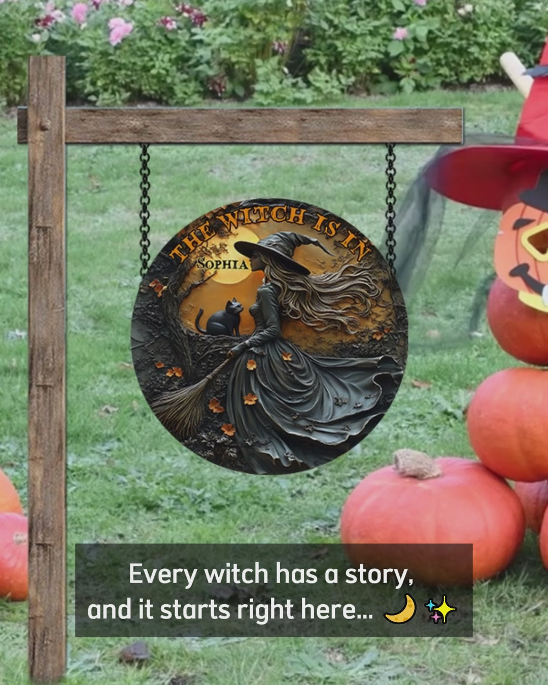 Beautiful Witch & Her Black Cat - Personalized Witch Round Metal Sign