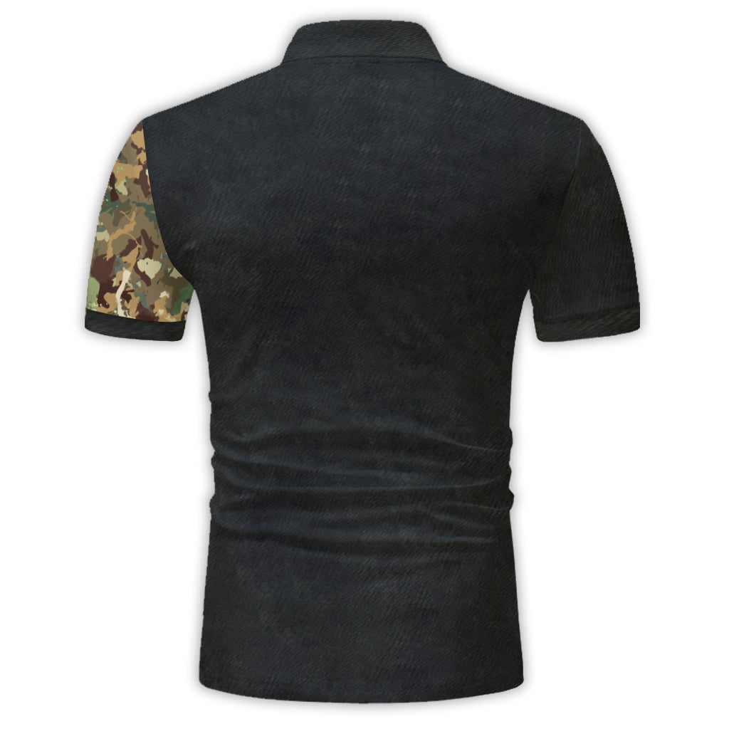 - The custom print polo shirt has 3 transparent buttons and a simple wide collar.