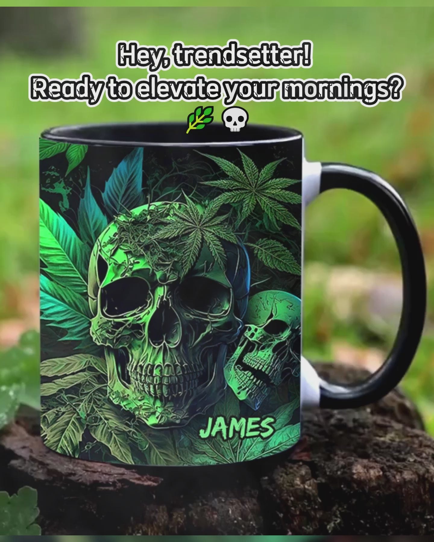 - High quality ceramic mug with two-tone rim, interior, & handle