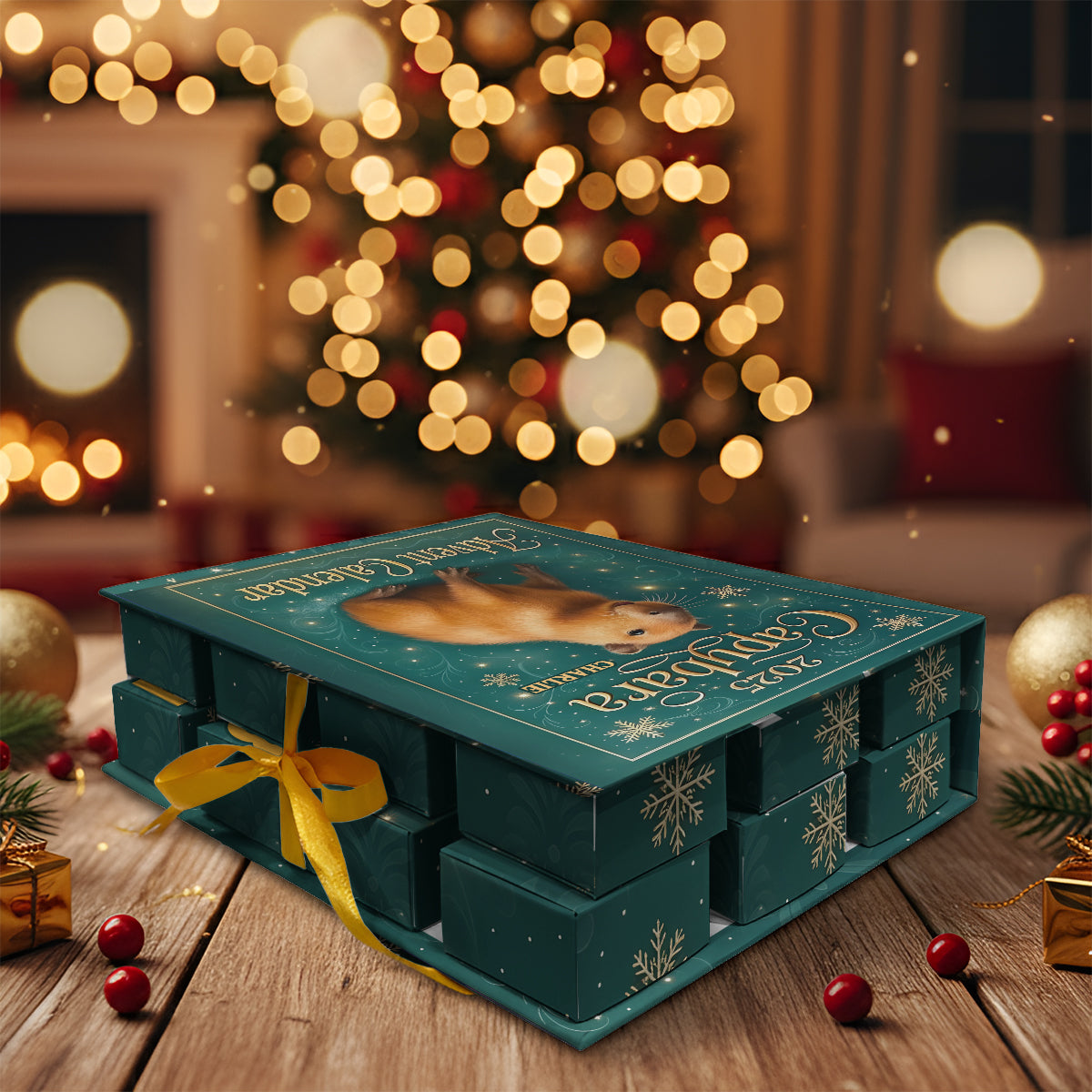 Cute Capybara 2025 Christmas - Personalized Rodent Animals (capybara, beaver, hamster, guinea pig) Folded Advent Calendar With Ornaments