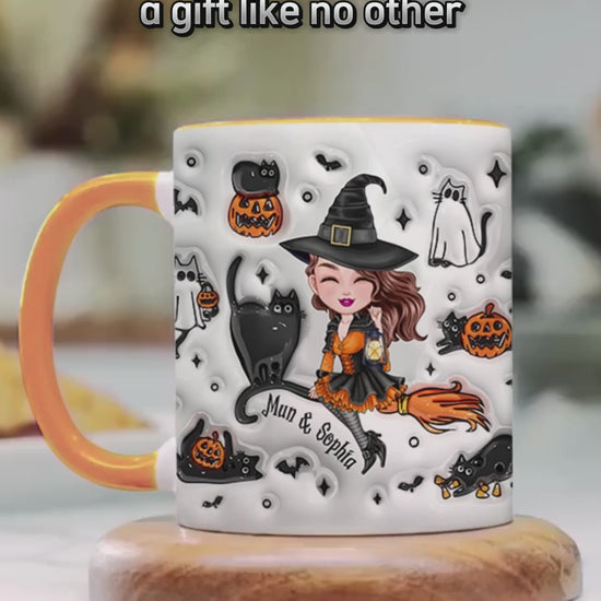 Cute Witch Halloween Ghost Boo Cat - Personalized Witch Accent Mug