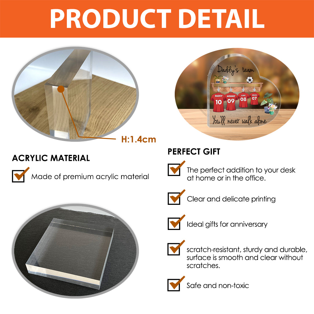 Daddy’s Team You Will Never Walk Alone - Personalized Father Custom Shaped Acrylic Plaque