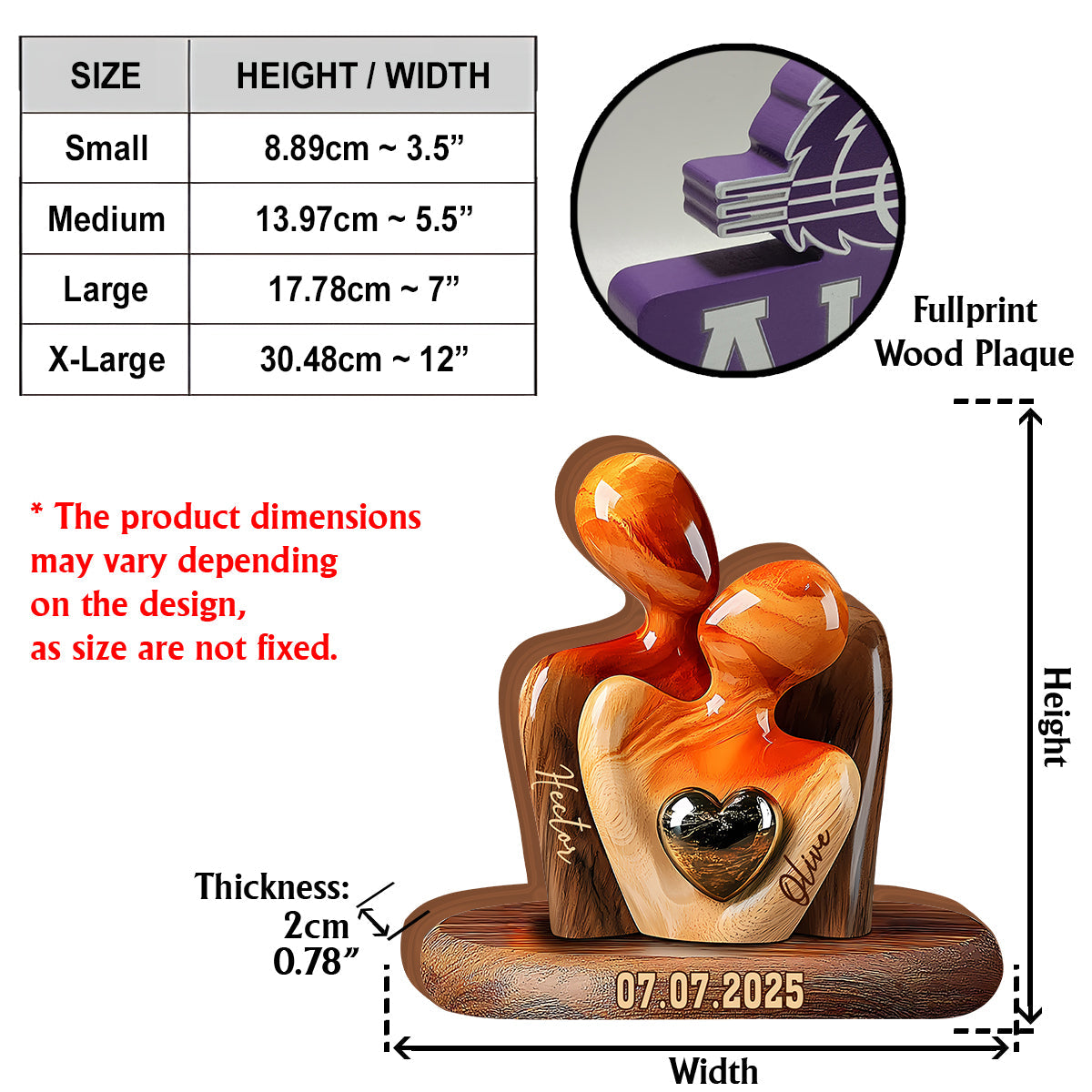 Elegant Couple Statue with Heart Inlay - Personalized Couple Custom Shaped Wood Plaque