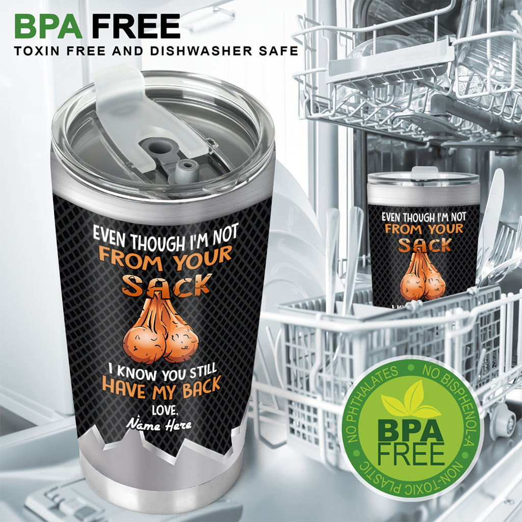 Even Though I'm Not From Your Sack I Know You Still Have My Back - Personalized Father Tumbler