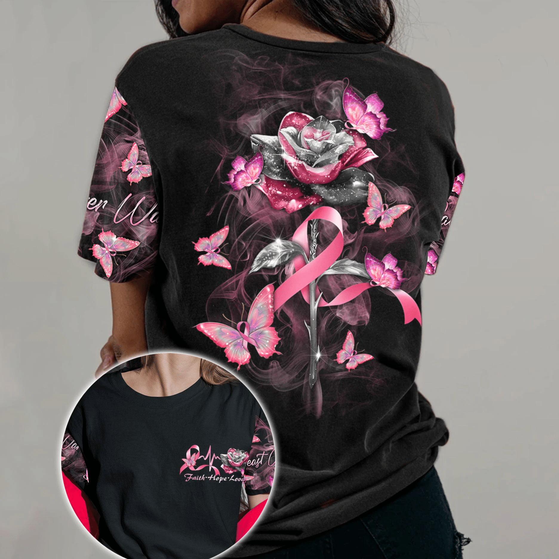Faith Hope Love Roses - Breast Cancer Awareness All Over T-shirt and Hoodie 0822
