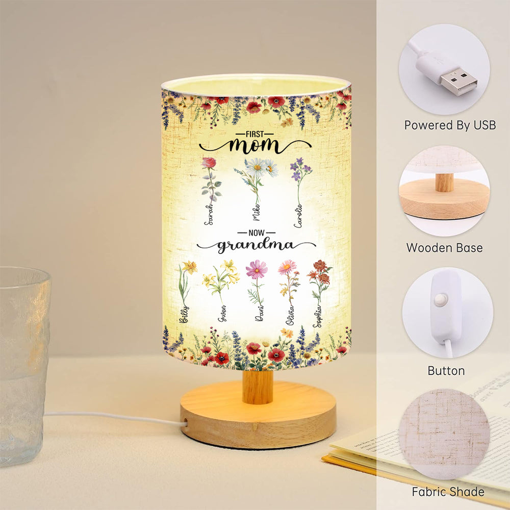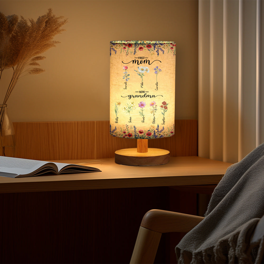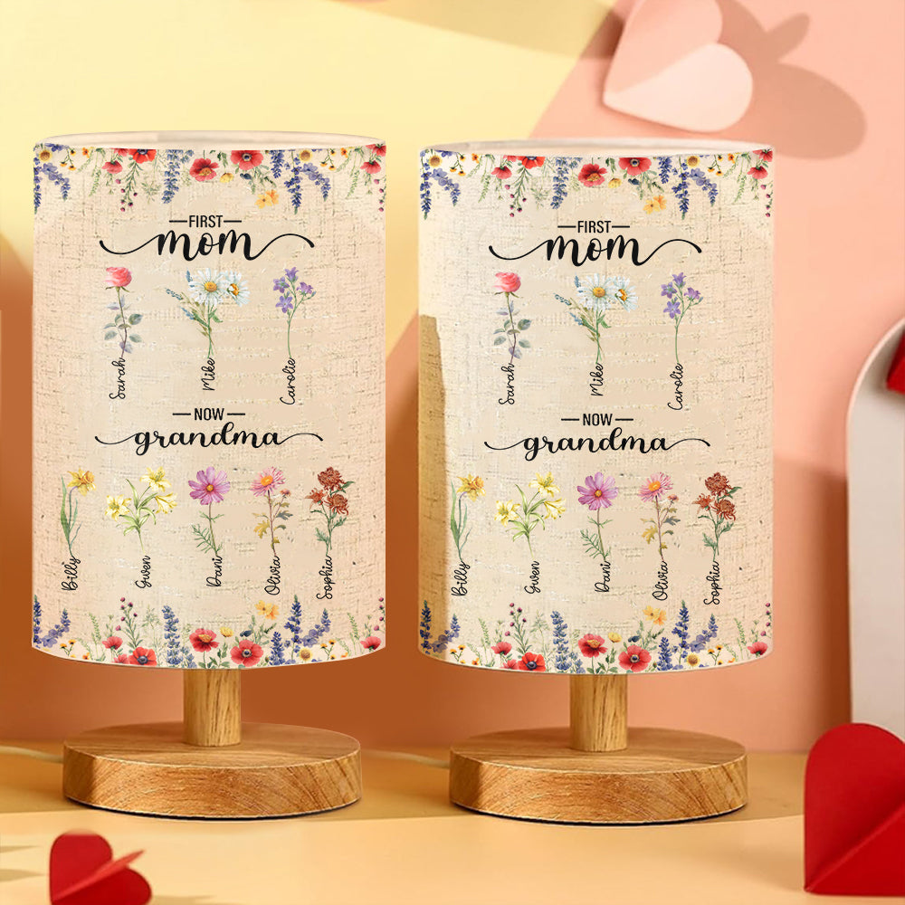 First Mom Now Grandma - Personalized Grandma Tableside Lamp With Wood Base