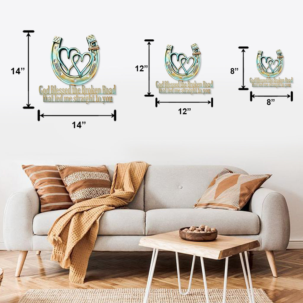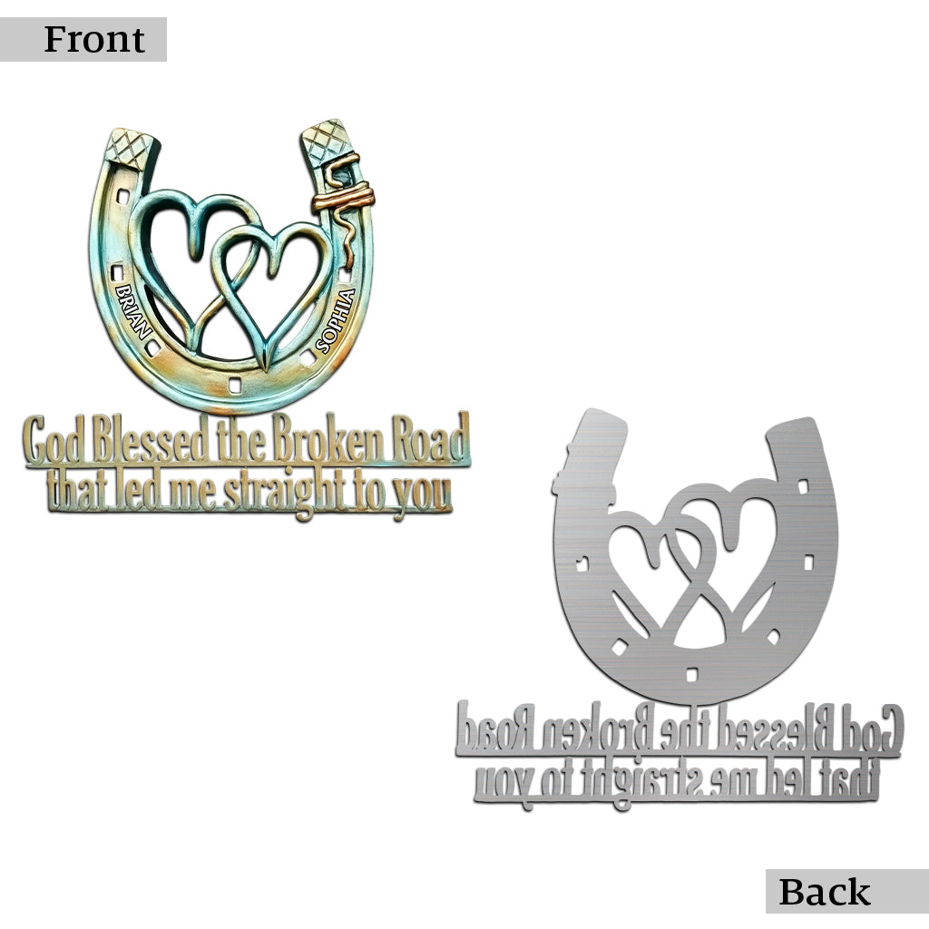 God Bless The Broken Road - Personalized Couple Cut Metal Sign