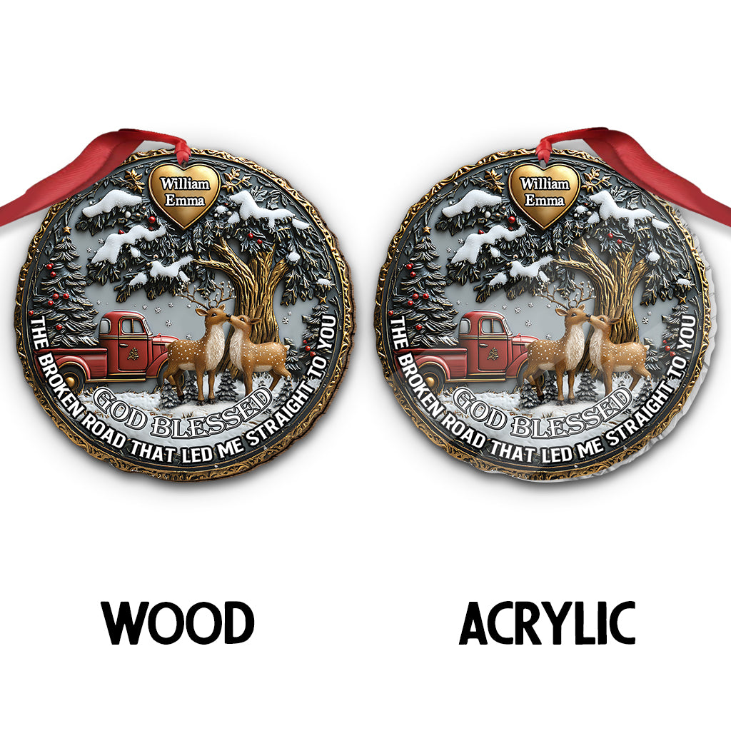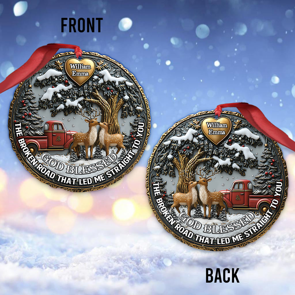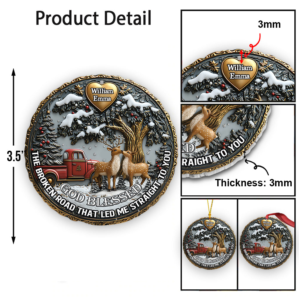 God Blessed The Broken Road - Personalized Couple Ornament