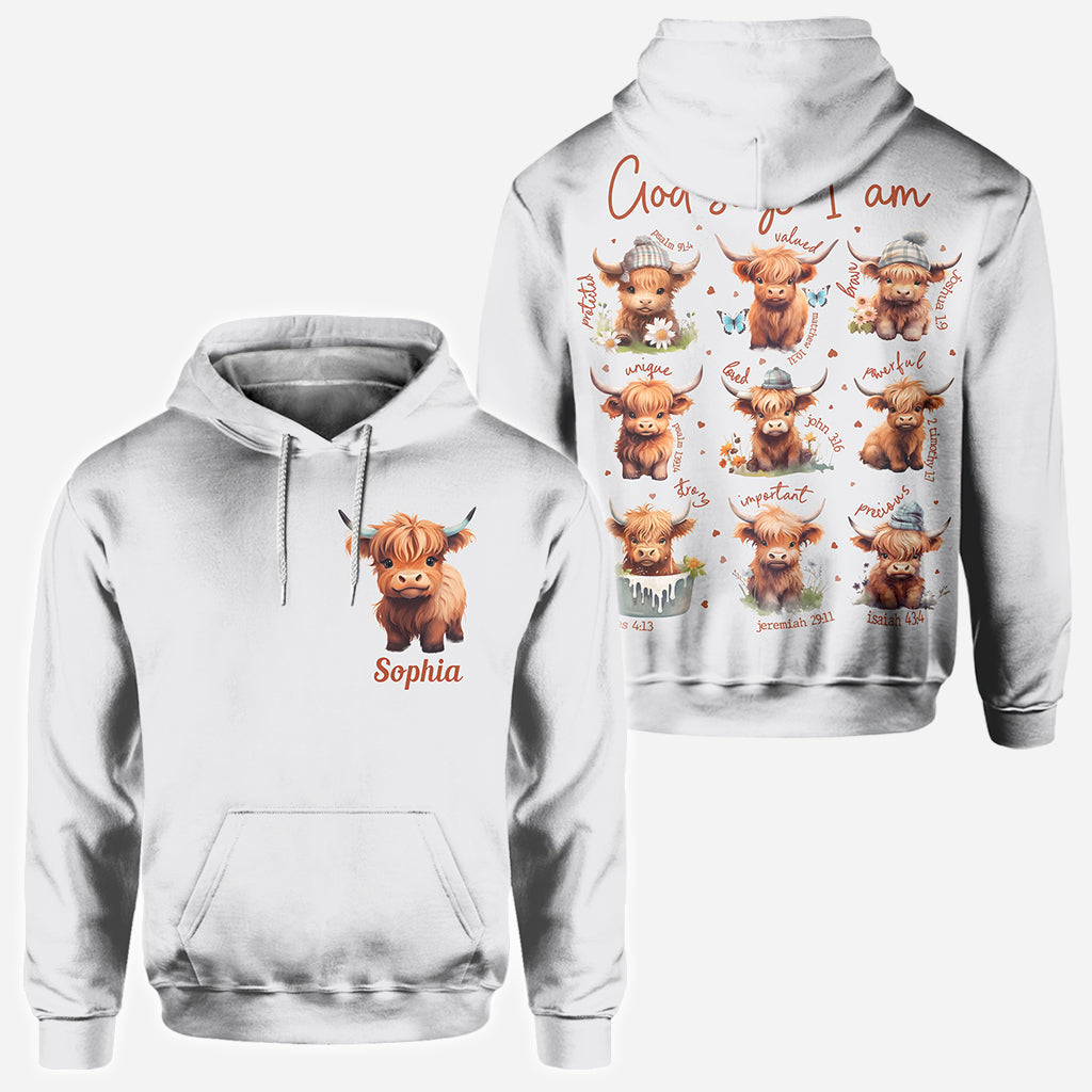 God Says I Am - Personalized Highland Cow All Over Shirt