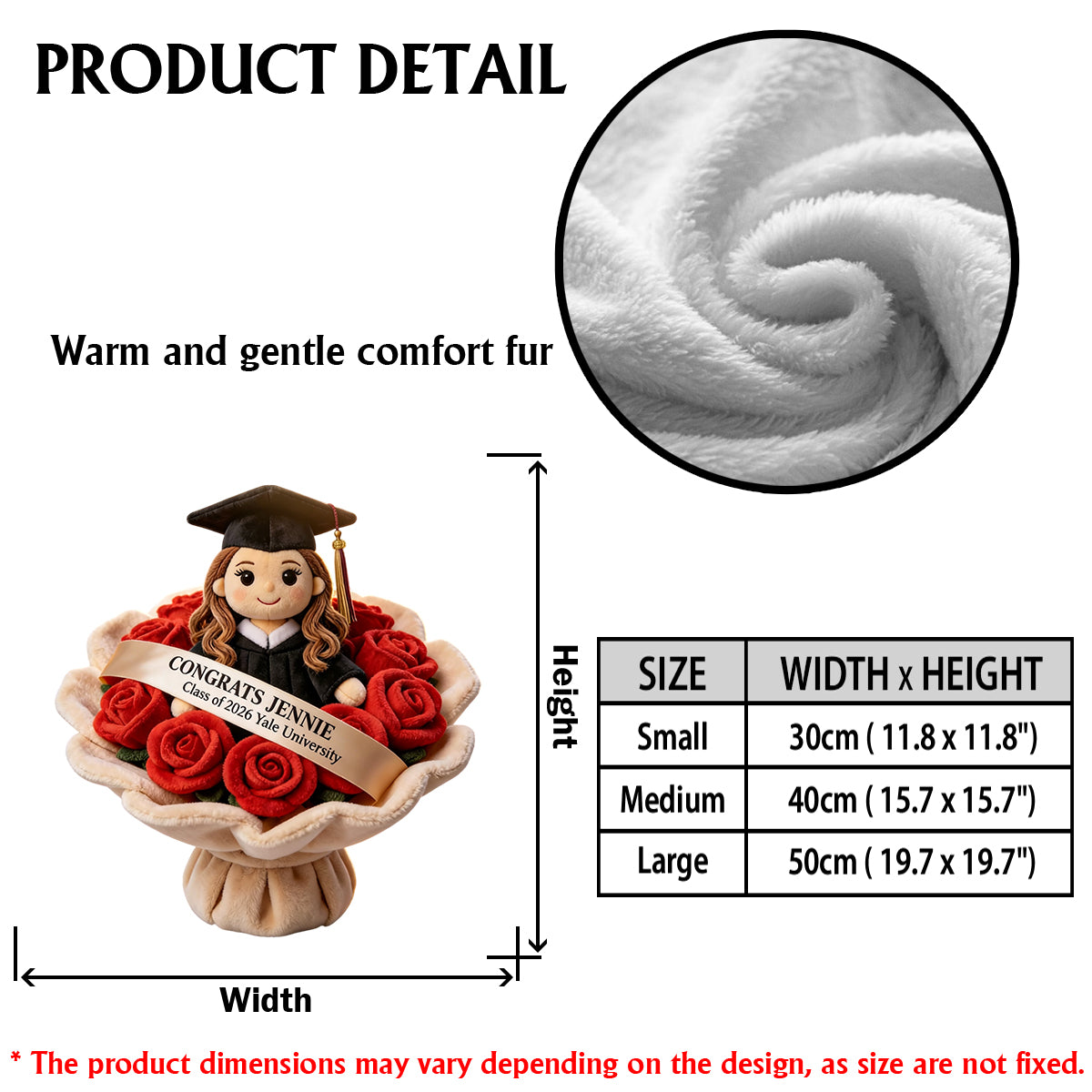 Graduation Plush Doll Bouquet - Personalized Graduation Premium Faux Fur Pillow