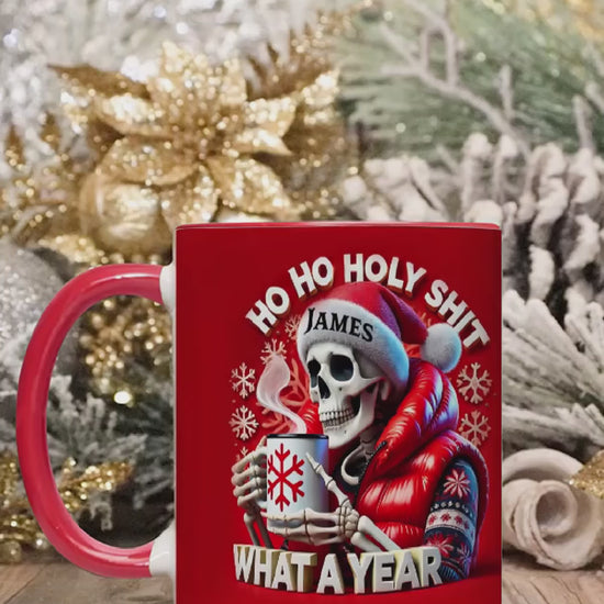 Ho Ho Holy Sh*t What A Year - Personalized Skull Accent Mug