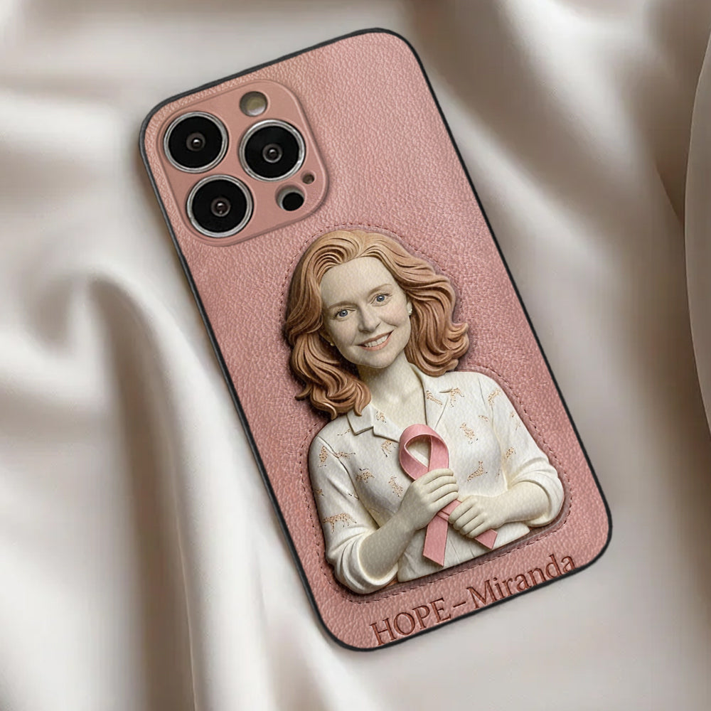 Hope - Personalized Breast Cancer Awareness 3D Embossed Leather Phone Case