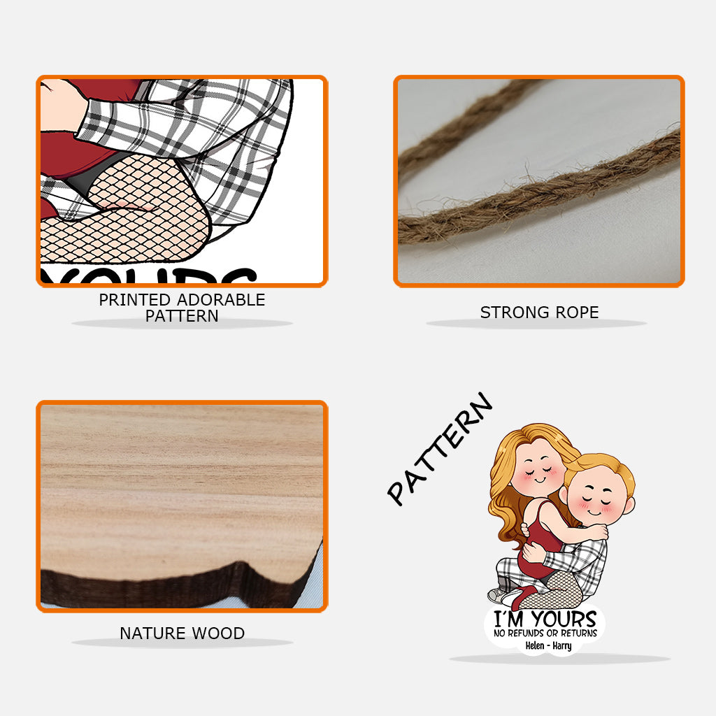 I'm Yours No Refunds Or Returns - Personalized Couple Custom Shaped Wood Sign
