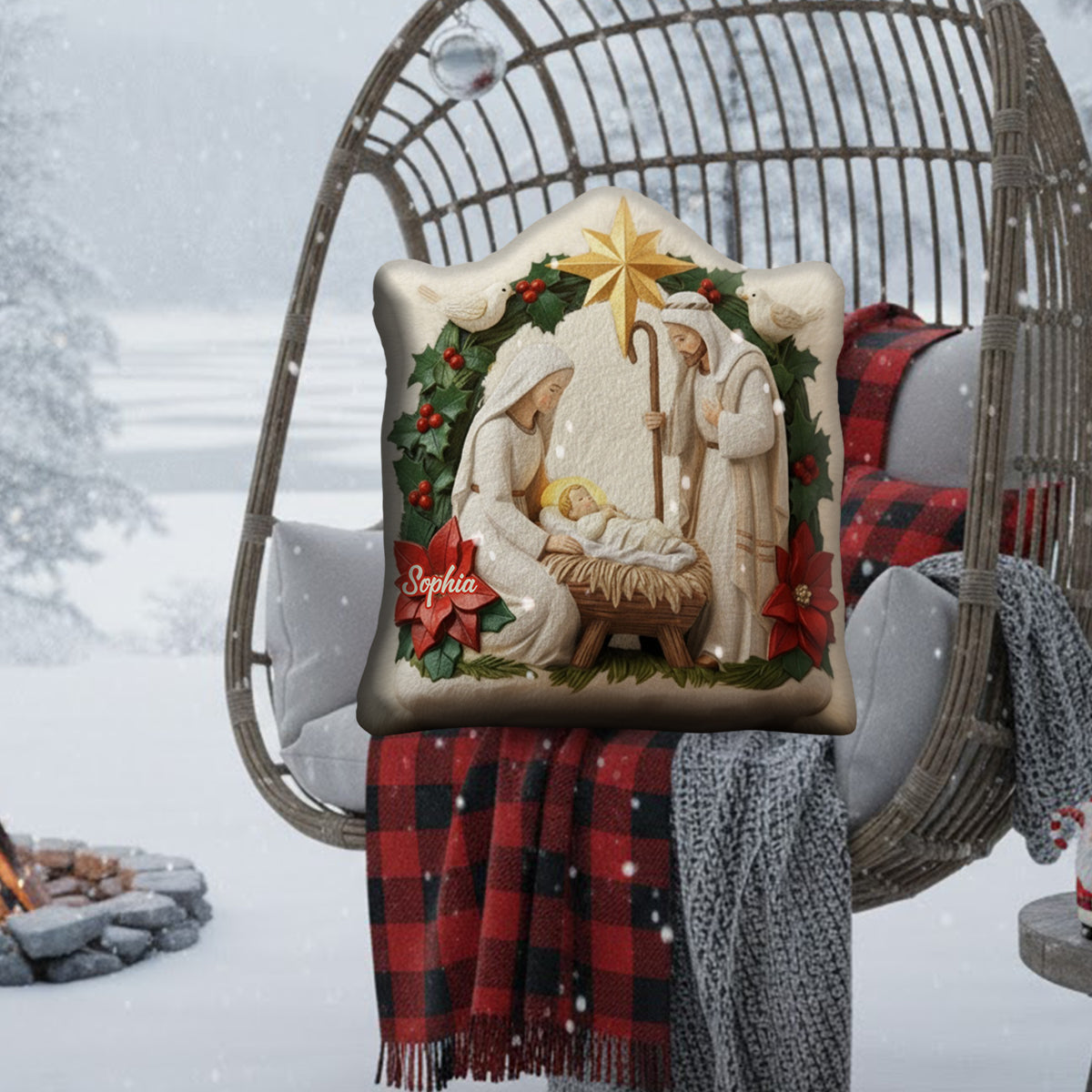 Ivory Blessing Jesus Is The Reason - Personalized Christian Faux Fur Shaped Pillow