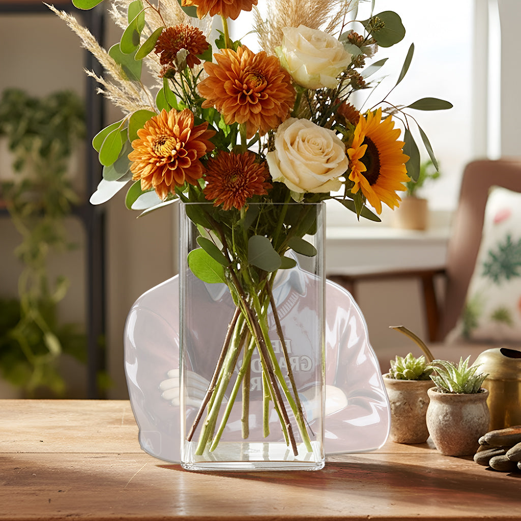 The front acrylic panel is printed on one side with vivid, high-quality colors, adding depth and personality while keeping a clean, modern look. The pot’s height and proportions make it suitable for small plants, fresh flowers, dried arrangements, or artificial bouquets, making it a flexible décor piece for homes, offices, or gift-giving.