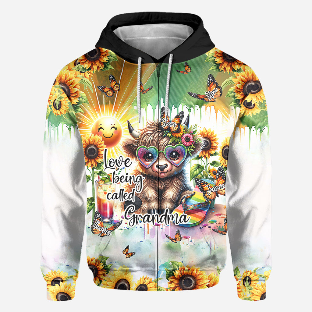 Love Being Called Grandma Highland Cow Summer Vibes - Personalized All Over Shirt