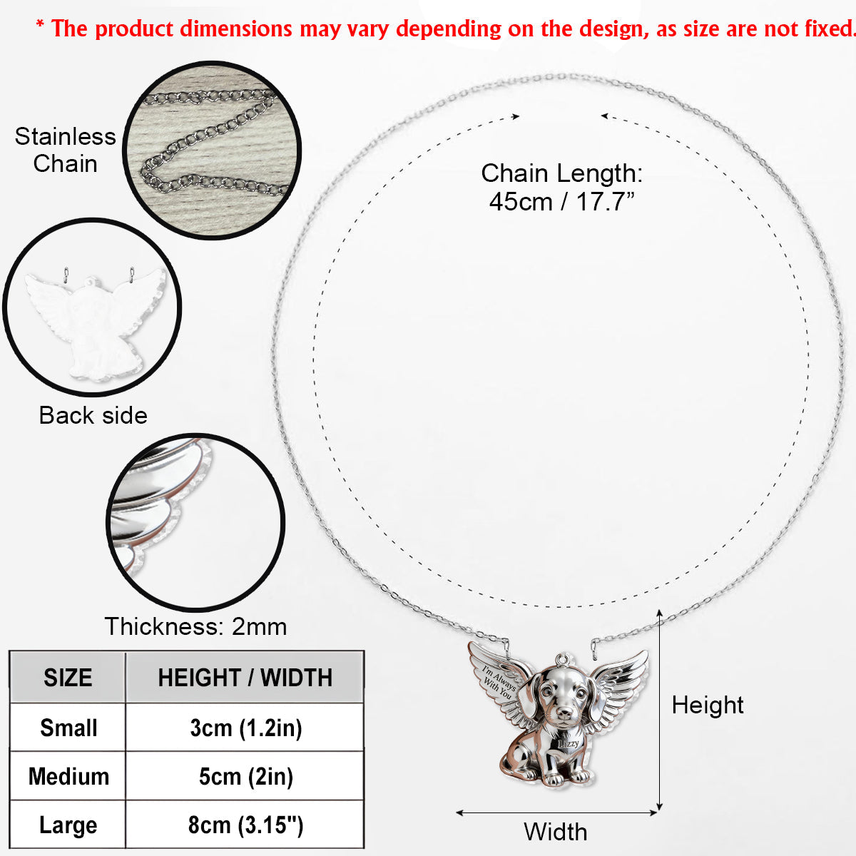 Add a personal touch to your jewelry collection with our Custom Shaped Pendant Necklace, crafted from durable stainless steel for long-lasting shine and style. This pendant is available in three sizes—3cm (1.18 inches), 4cm (1.57 inches), and 8cm (3.15 inches)—and features UV printing technology for vibrant, high-quality designs that stand the test of time.