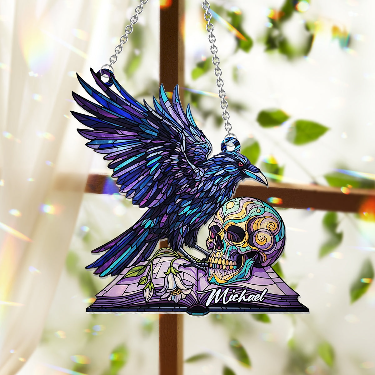 Magical Raven Skull - Personalized Skull Window Hanging Suncatcher Ornament