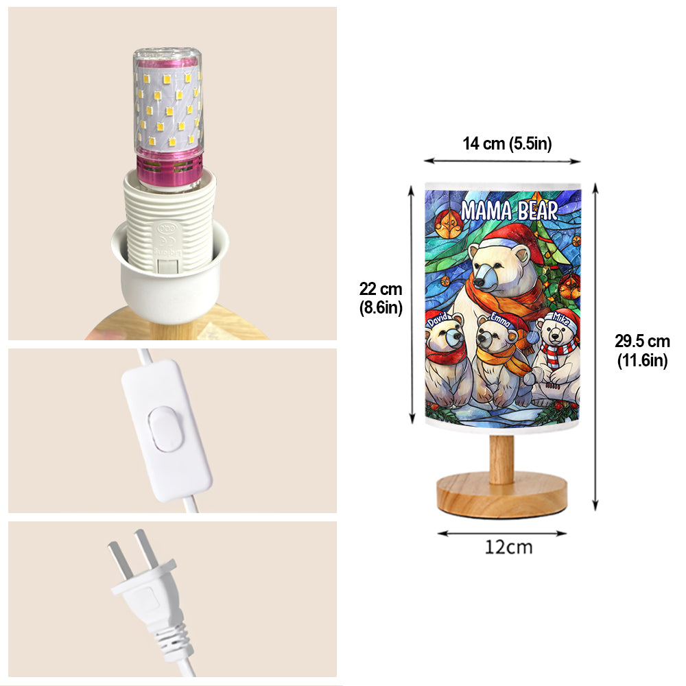 Mama Bear - Personalized Mother Table Lamp With Wood Base