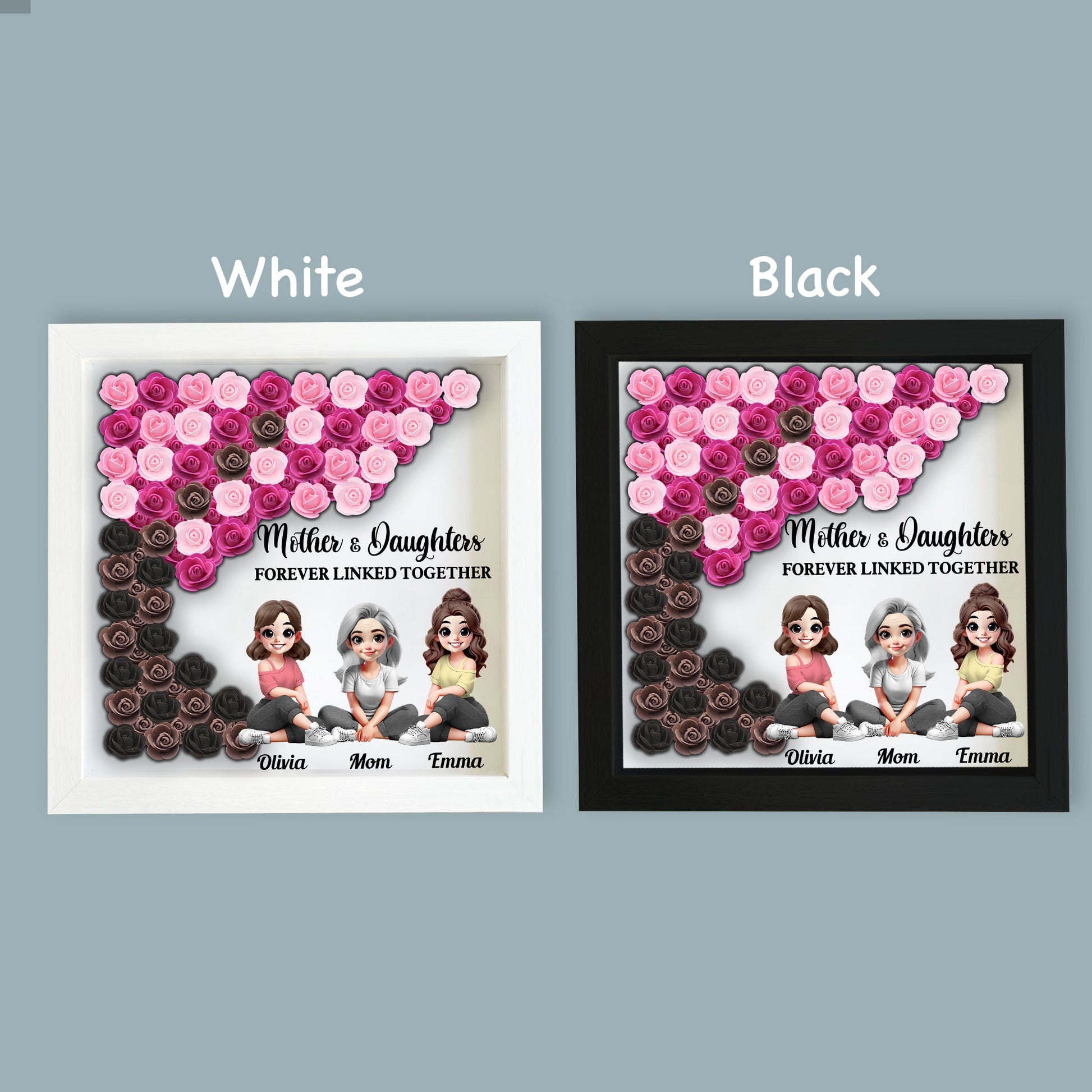 Mother and Daughter Forever Linked Together - Personalized Mother Custom Shaped Flower Shadow Box