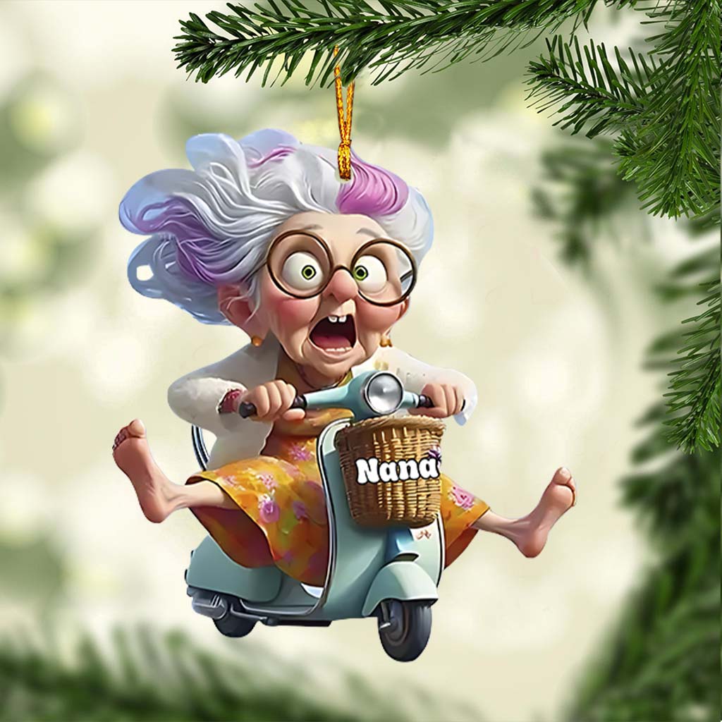 Motorcycle-Riding Grandma - Personalized Grandma Ornament