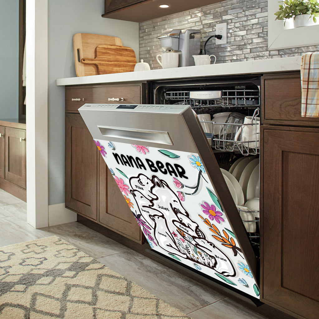 Nana Bear Huggings Her Cubs Floral Style - Personalized Grandma Dishwasher Cover