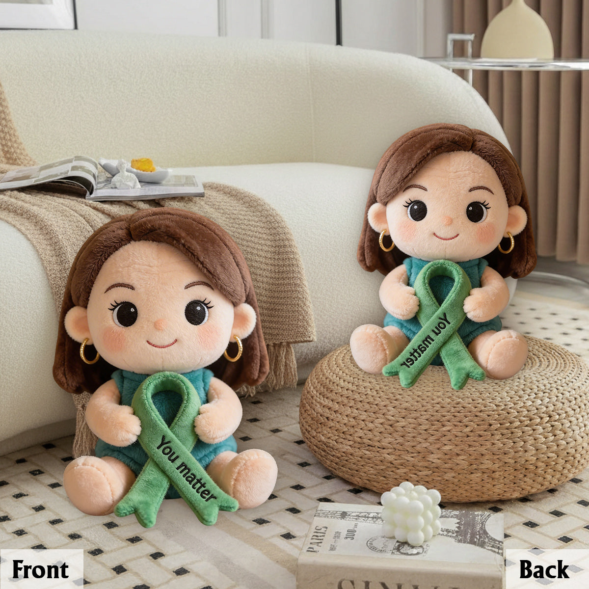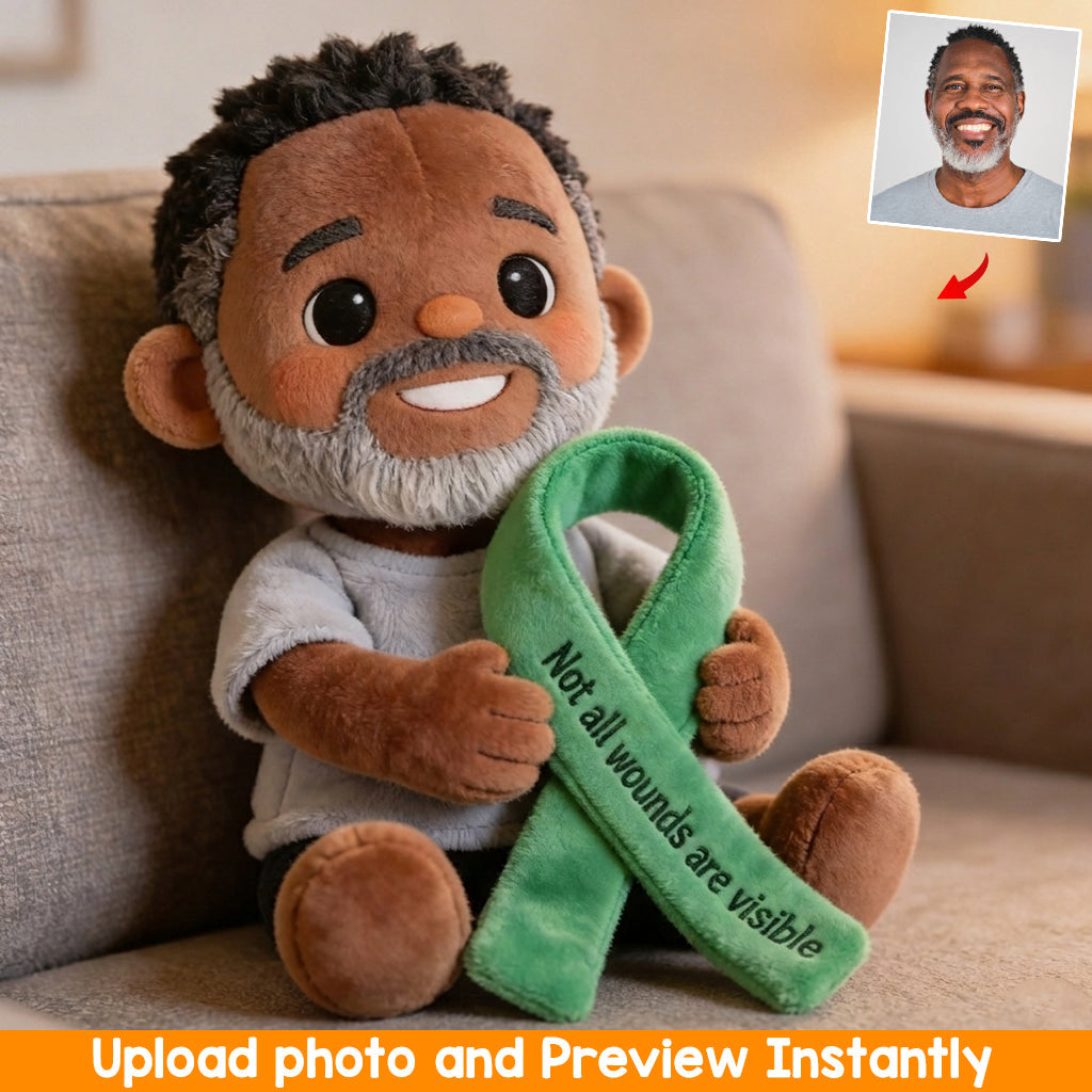 Never Give Up Green Ribbon - Personalized Mental Health Awareness Premium Faux Fur Pillow