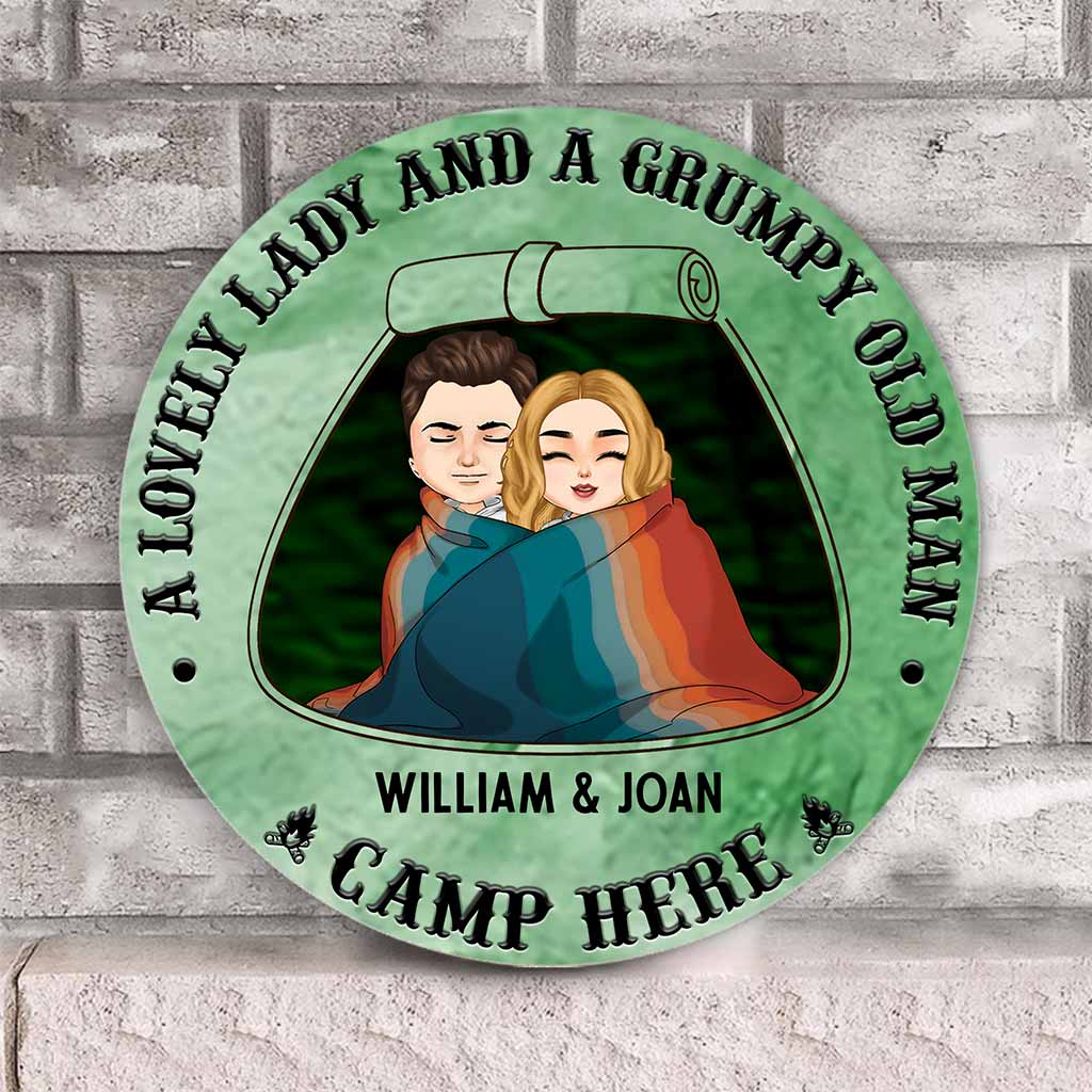 A Lovely Lady Grumpy Old Man Camp Here - Personalized Couple Round Wood Sign