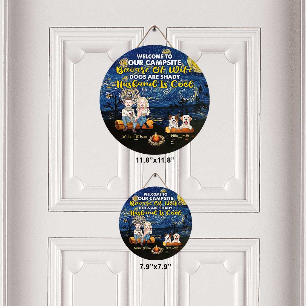 Welcome To Our Campsite - Personalized Couple Camping Round Wood Sign