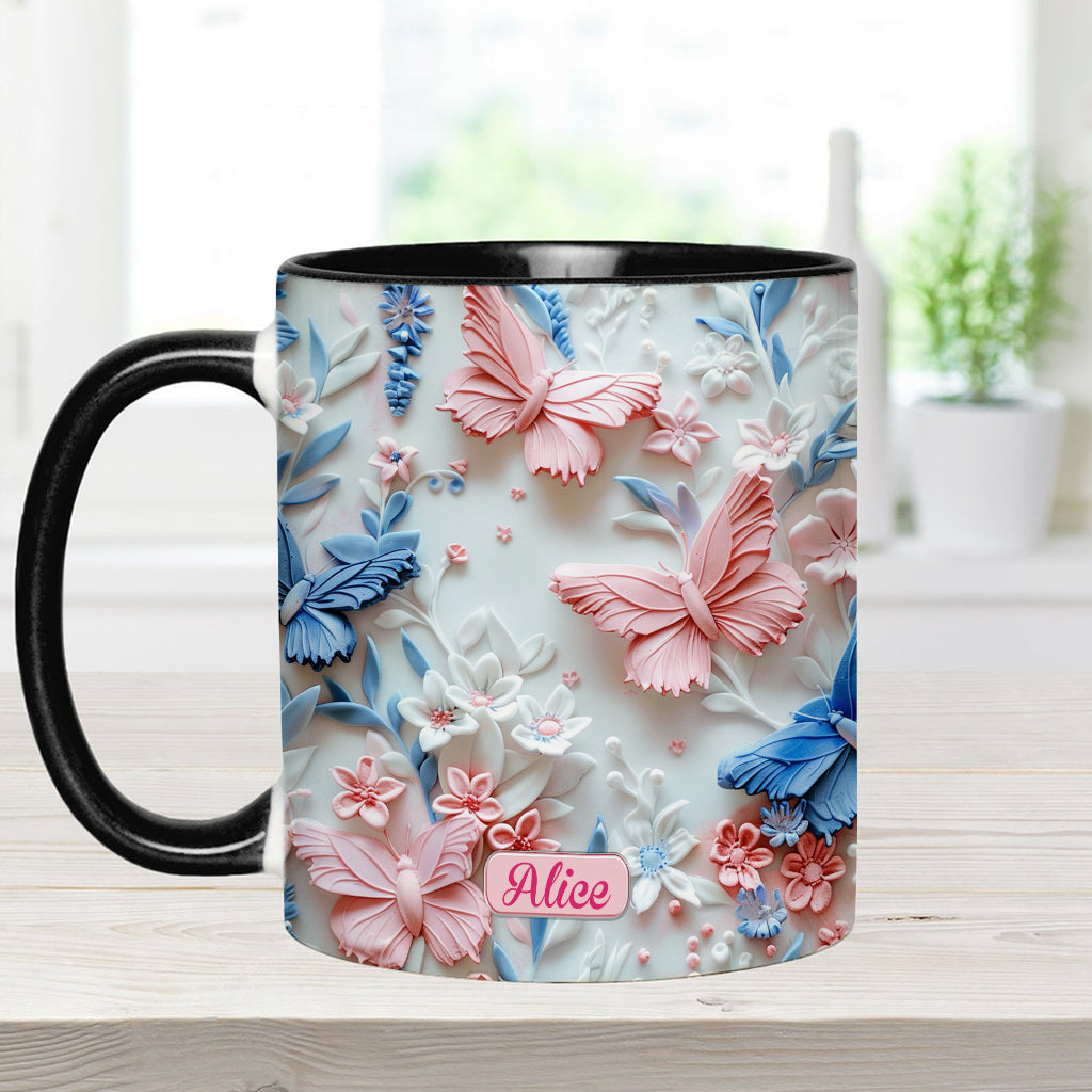 Pink And Blue Butterflies - Personalized Butterfly Accent Mug