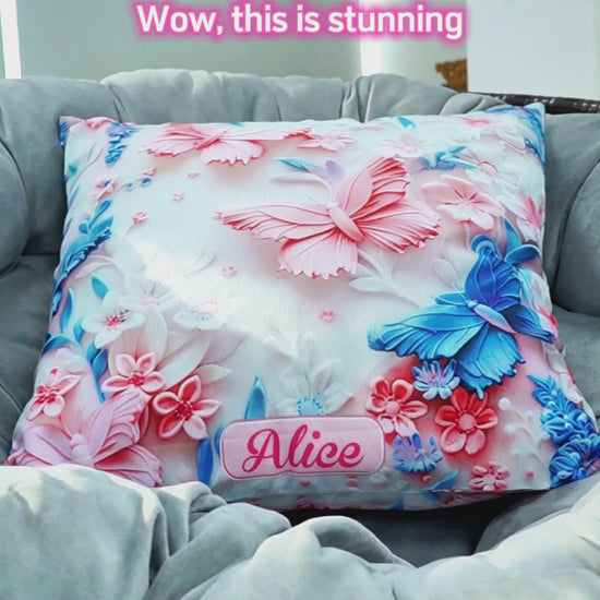 Pink And Blue Butterflies - Personalized Butterfly Throw Pillow