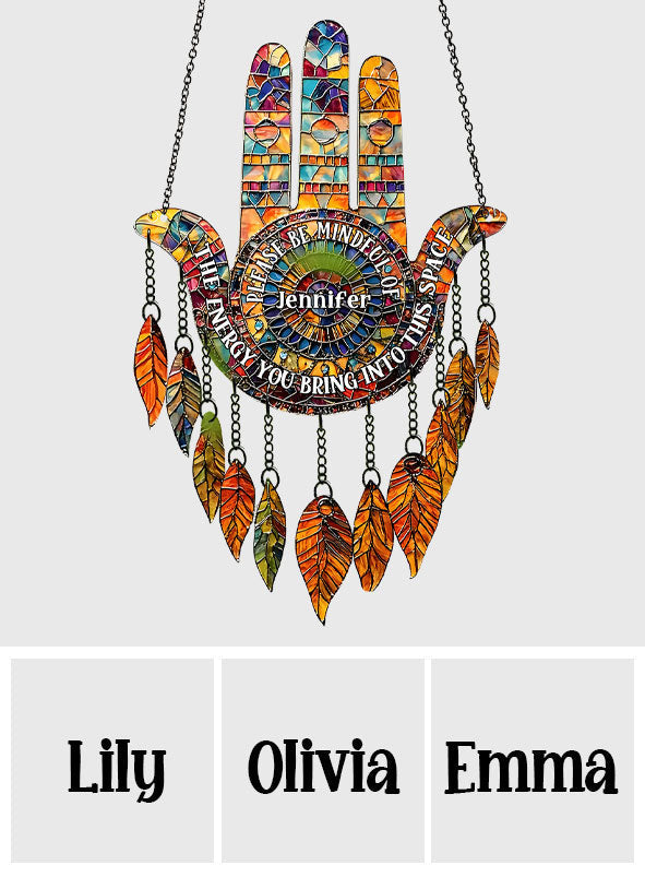 Please Be Mindful - Personalized Yoga Window Hanging Suncatcher With Charms