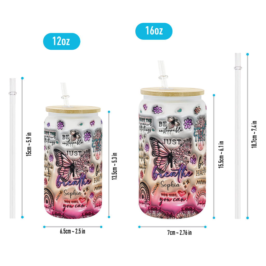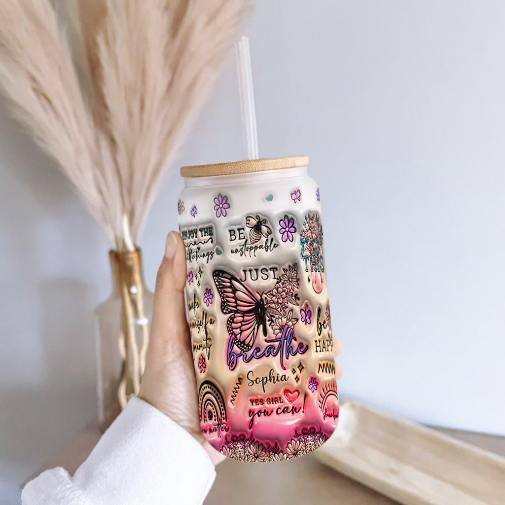 Positive Affirmations Butterfly - Personalized Butterfly Can Glass