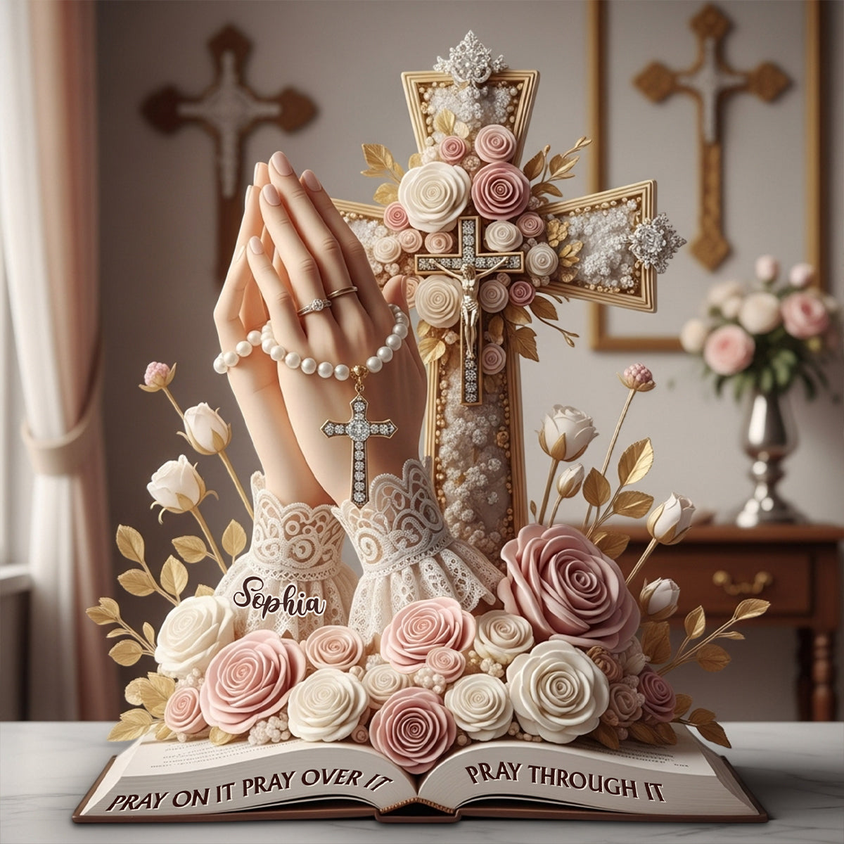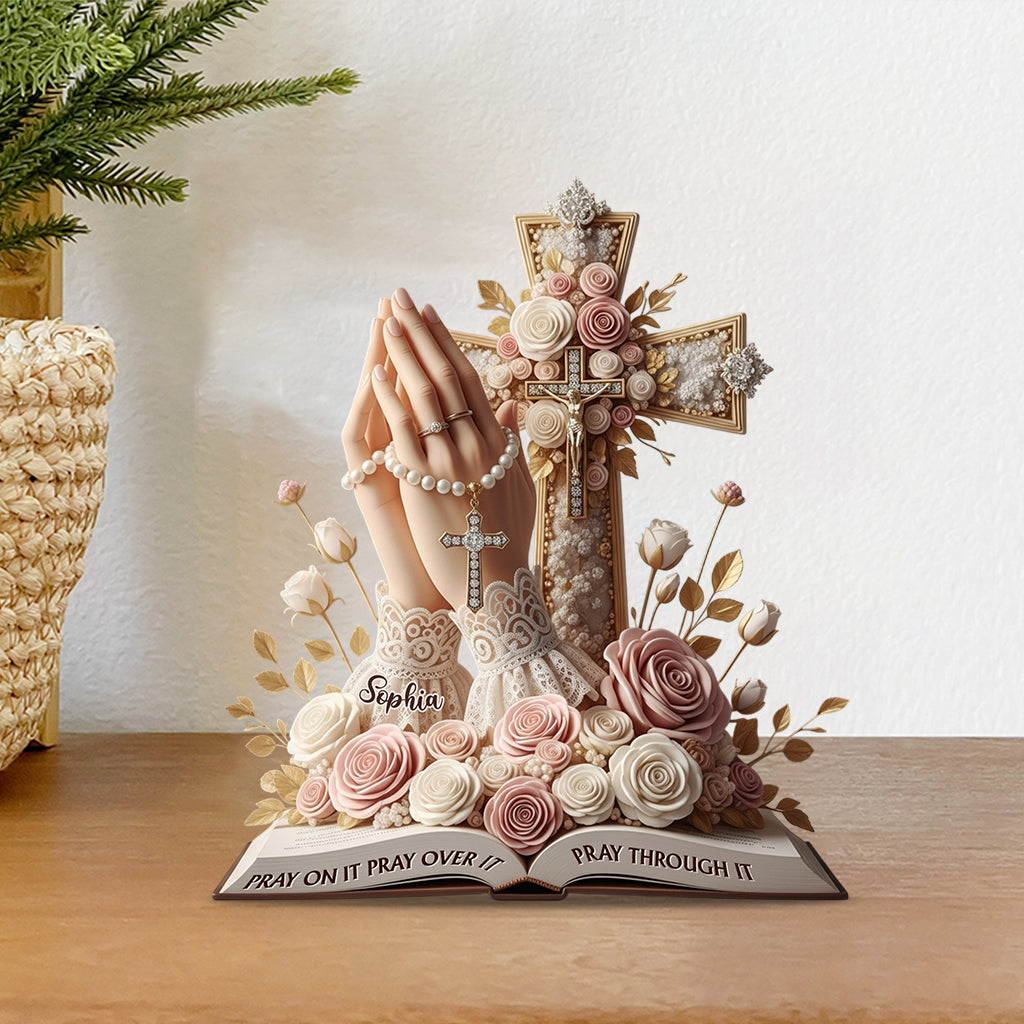 Pray On It Pray Over It Pray Through It - Personalized Christian Custom Shaped Acrylic Plaque