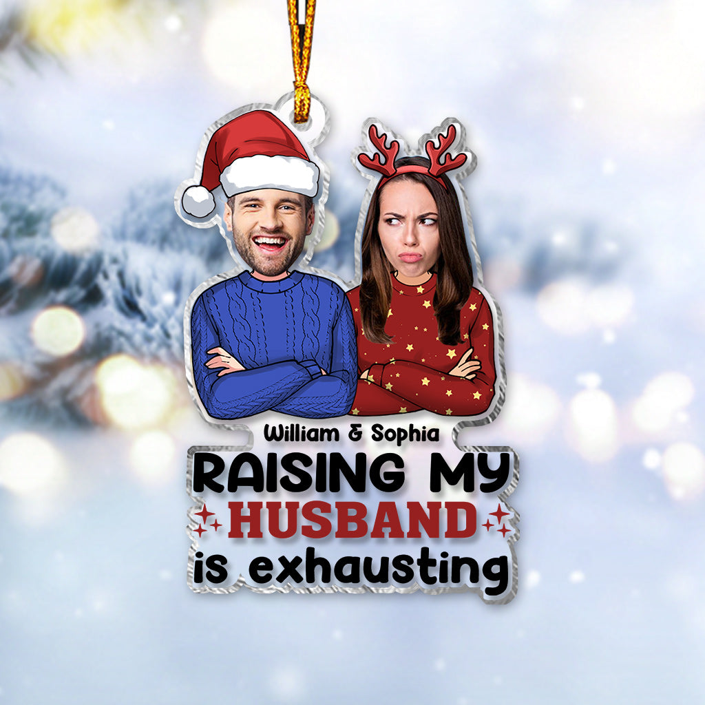 Raising My Husband Is Exhausting - Personalized Husband And Wife Transparent Ornament