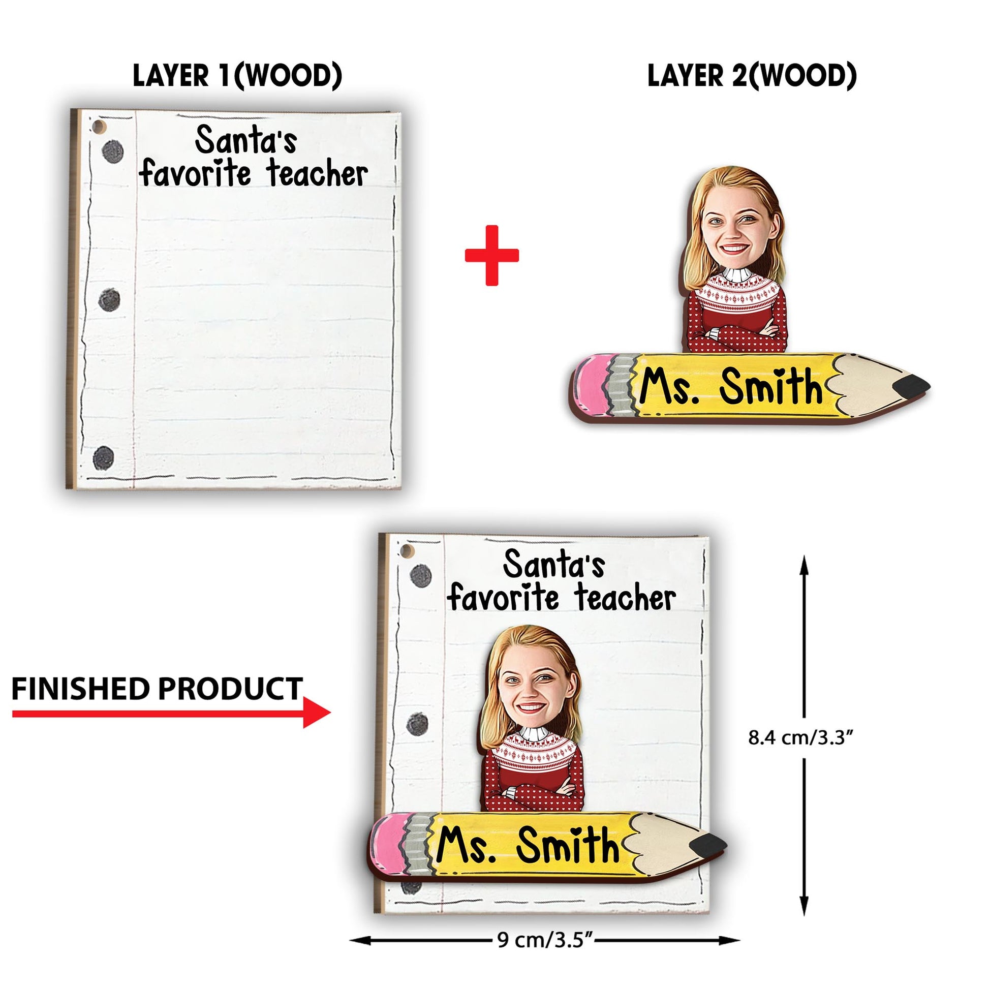 Santa's Favorite Teacher - Personalized Teacher 2 Layered Piece Ornament