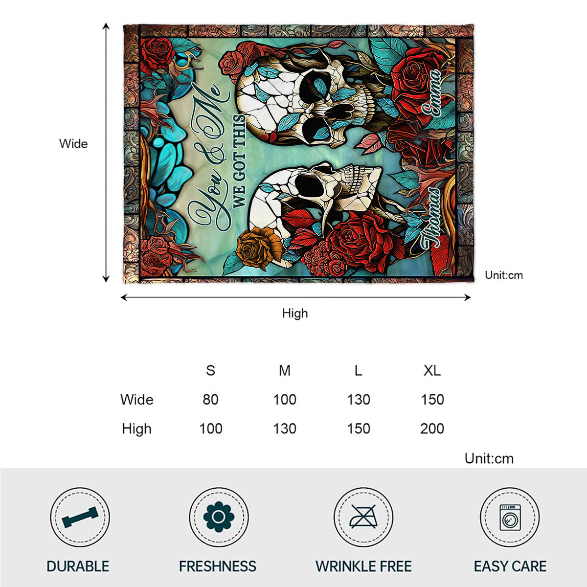 Skull Couple - Skull gift for husband, wife, boyfriend, girlfriend - Personalized Blanket