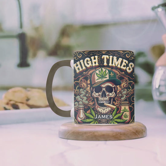 - High quality ceramic mug with two-tone rim, interior, & handle