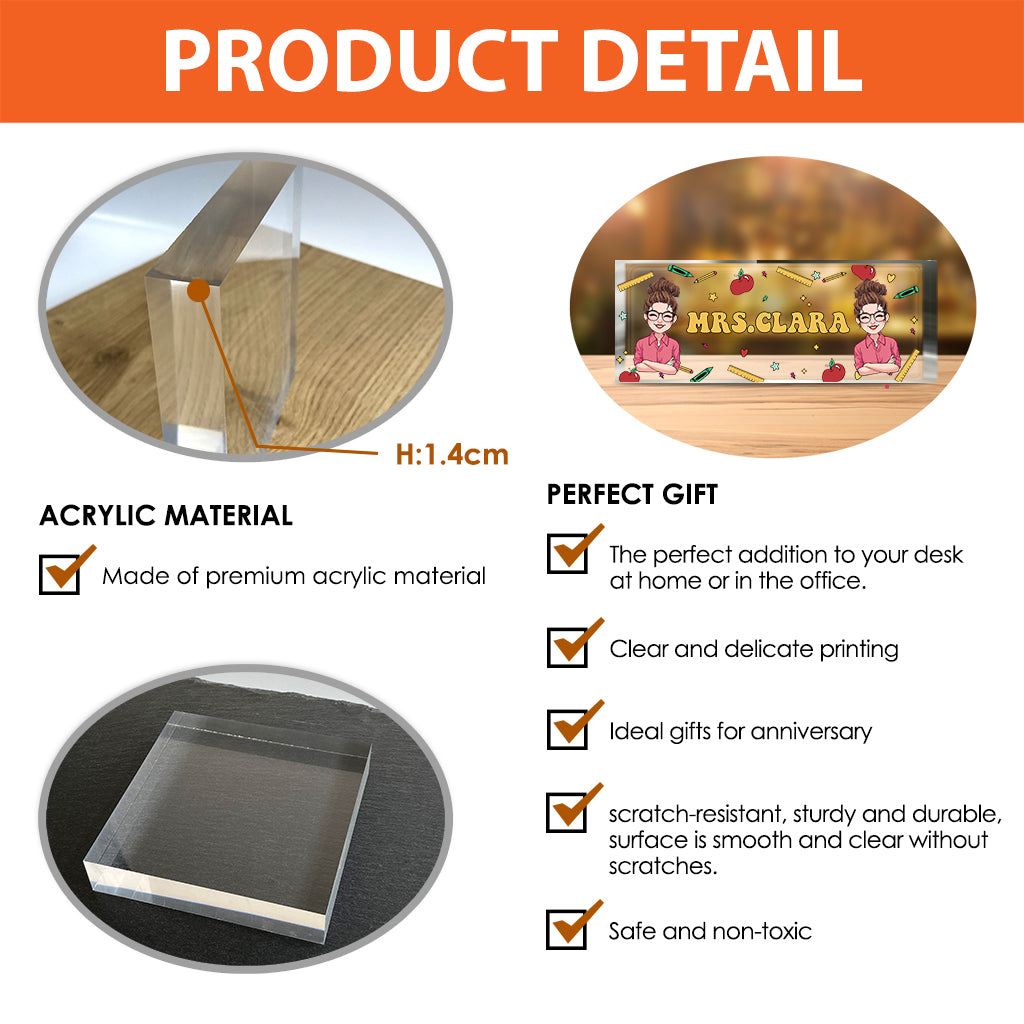 Teacher Desk Name Plate - Personalized Teacher Custom Shaped Acrylic Plaque