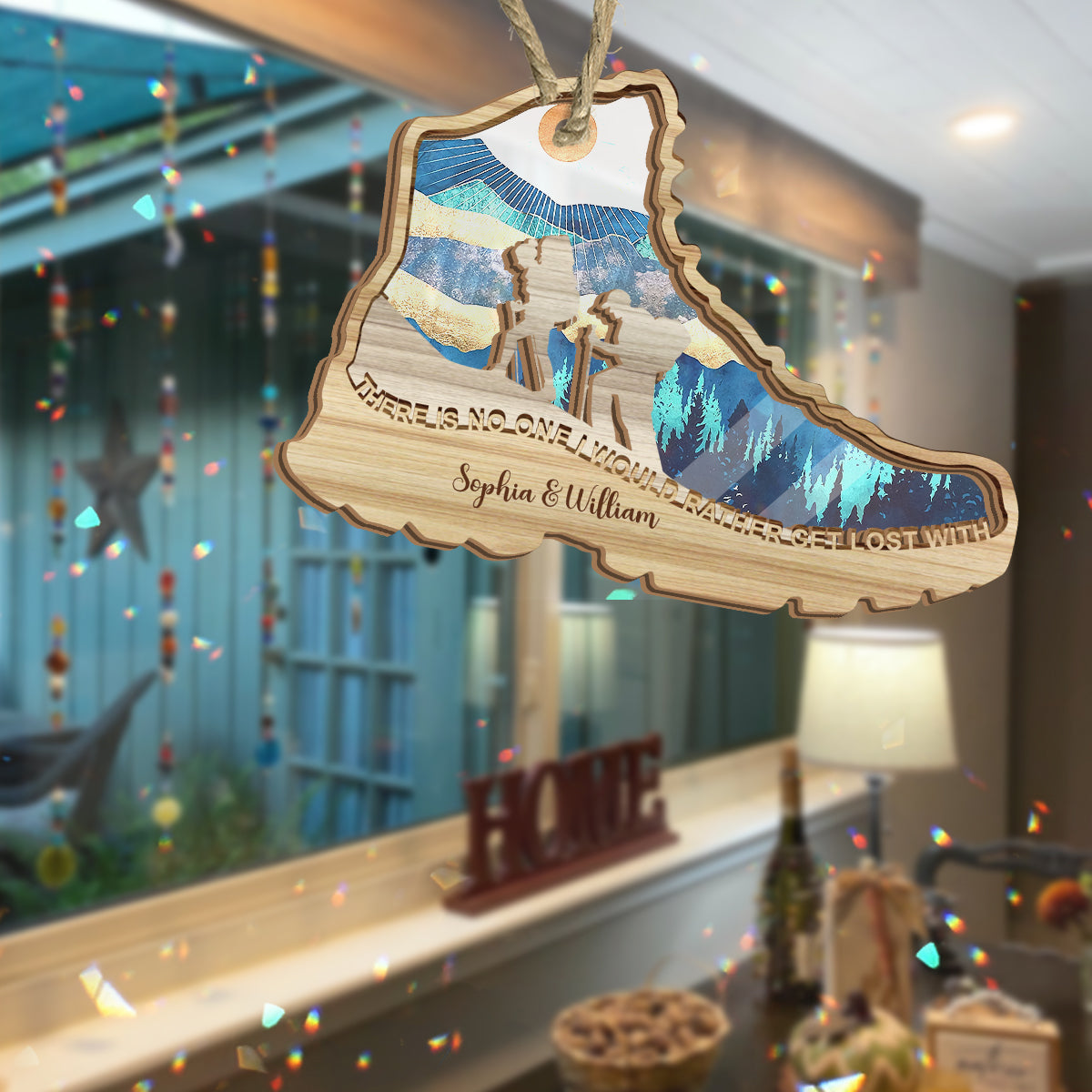 There Is No One I Would Rather Get Lost With - Hiking gift for wife, husband, boyfriend, girlfriend - Personalized Suncatcher