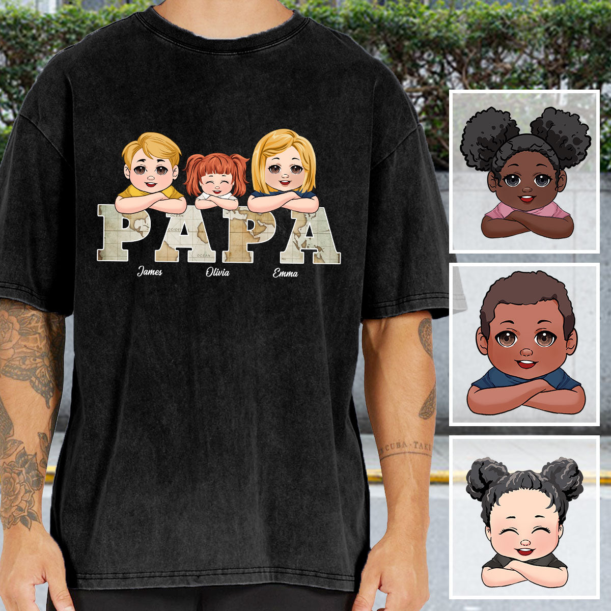 Vintage Map Papa Title - Personalized Father Wash T-shirt