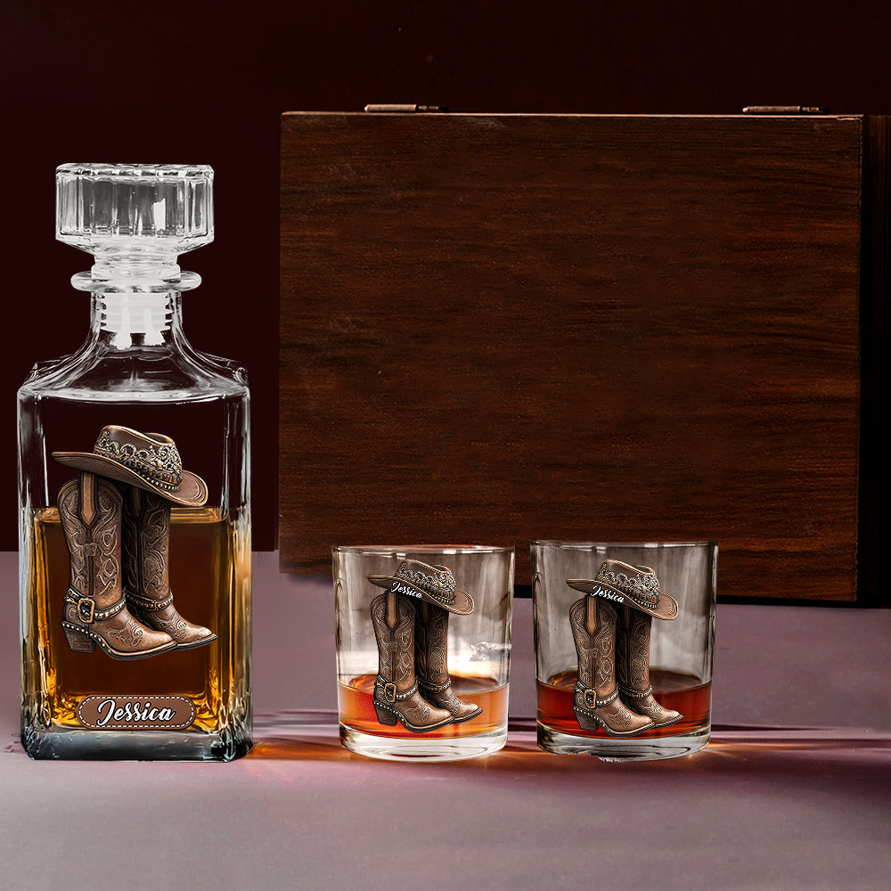 Western Spirit - Personalized Cowgirl Whiskey Decanter Set
