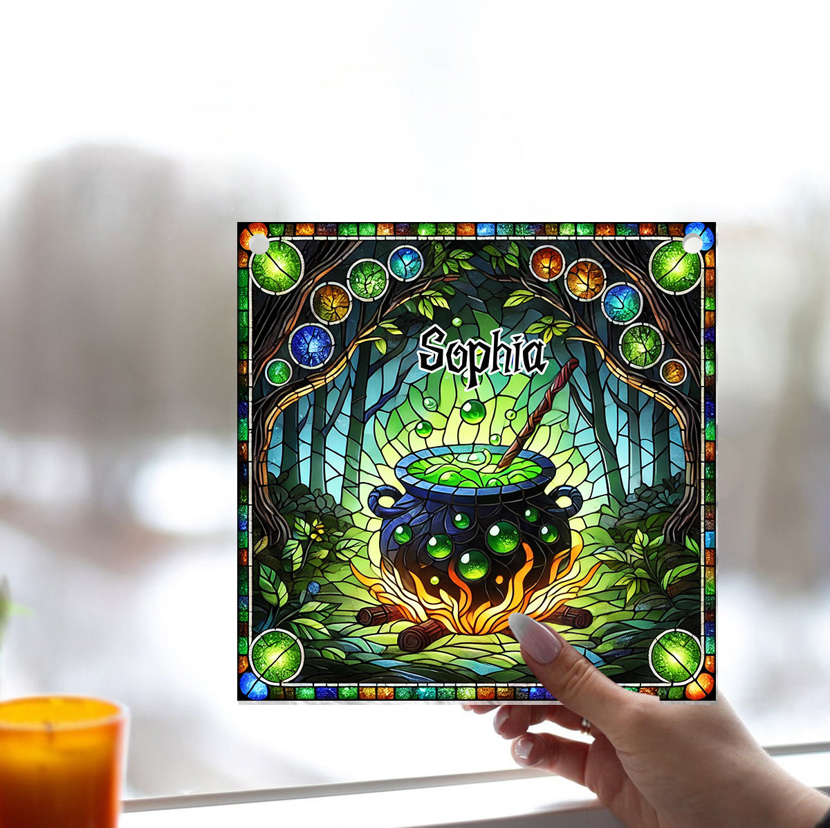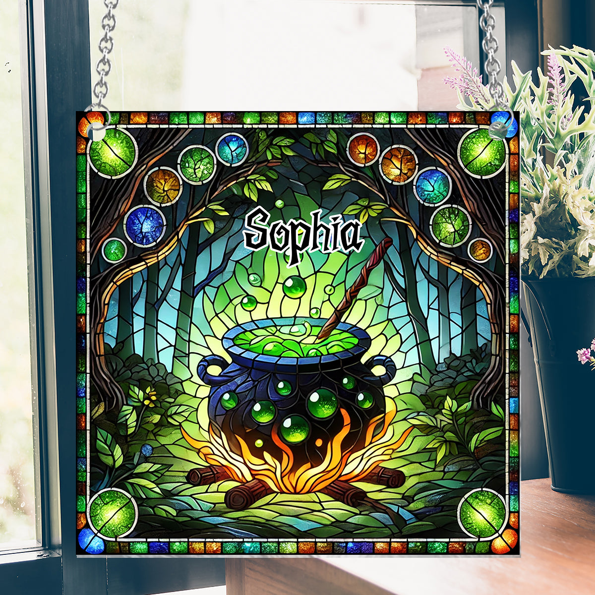 Witch's Cauldron - Personalized Witch Window Hanging Suncatcher Ornament